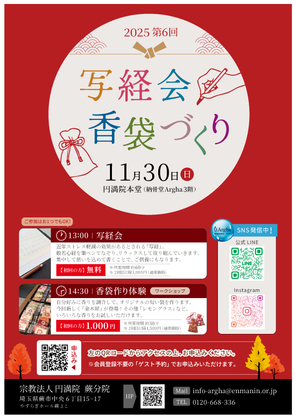 円満院蕨分院にて随時受け付けております。
